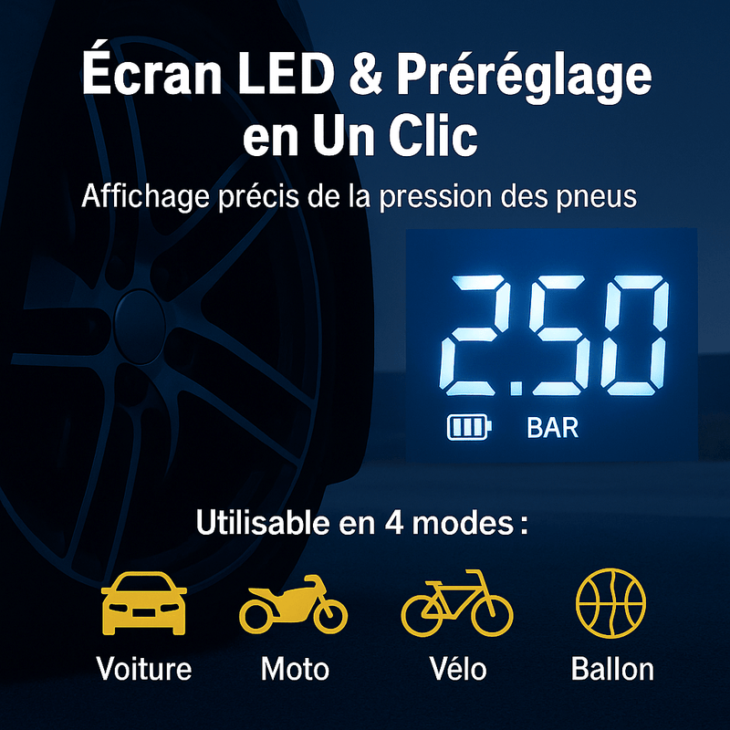 Profitez d’un gonflage précis et rapide grâce à l’écran LED lumineux affichant la pression en temps réel.